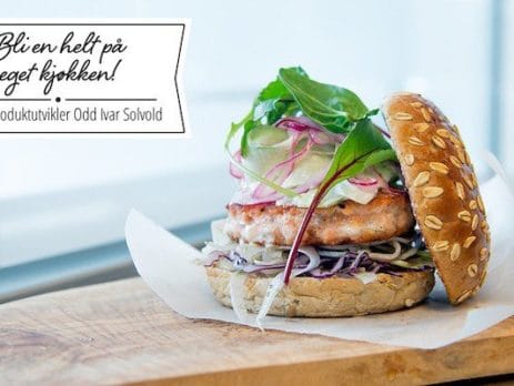Prøv den perfekte sommerburgeren!Du blander den raskt, den stekes raskt og den er sunn.Det lille trikset med å bruke semulegryn på utsiden gir den en ekstra crunch i texturen og drar til seg ekstra med smak ved stekingen. Ved å skylle løken får du vekk mye av gassen og løken blir søtere, rundere og ettersmaken forsvinner.Du trenger:Lakseburger500 g laksefilet salt, kvernet sort pepper, cayennepepper revet skall av ½ sitron 4 ss semulegrynAgurksalat1 agurk 2 ss rømme 1 ts Dijon sennep saltSyrlig rødløk ½ rødløk 1 ss rødvinseddik 0,5 ts sukkerFennikelslaw100 g rødkål 1 fennikel ½ sitronsaft salt god olivenoljeburgerbrød olivenolje salatrapsoljeSlik gjør du: Kvern laksen på 5 mm eller bruk en kniv og hakk laksen...