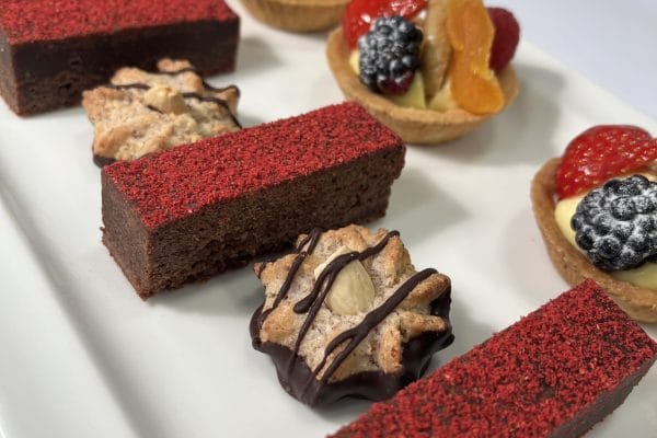 - Alle dessertene produseres i lokaler der det også produseres varer med hvetemel og nøtter og kan derfor inneholde spor av både gluten og nøtter